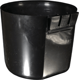 These are great for feed or water. Holds enough water for ~4 days in hot weather for one bird or longer in cool weather. Although not recommended for use as a water cup in colder climates with many below freezing days, they are now made with more flexible plastic than they were in 2020 and before, so won't break as quickly. Hangs on wire or other thin material and is 6.25" diameter x 5" deep and holds 64 ounces of water.